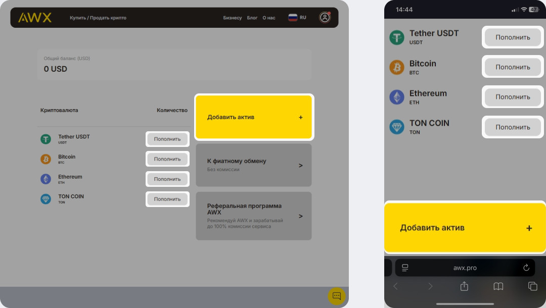 Пополнить баланс AWX можно также наличными в офисе по этой инструкции .