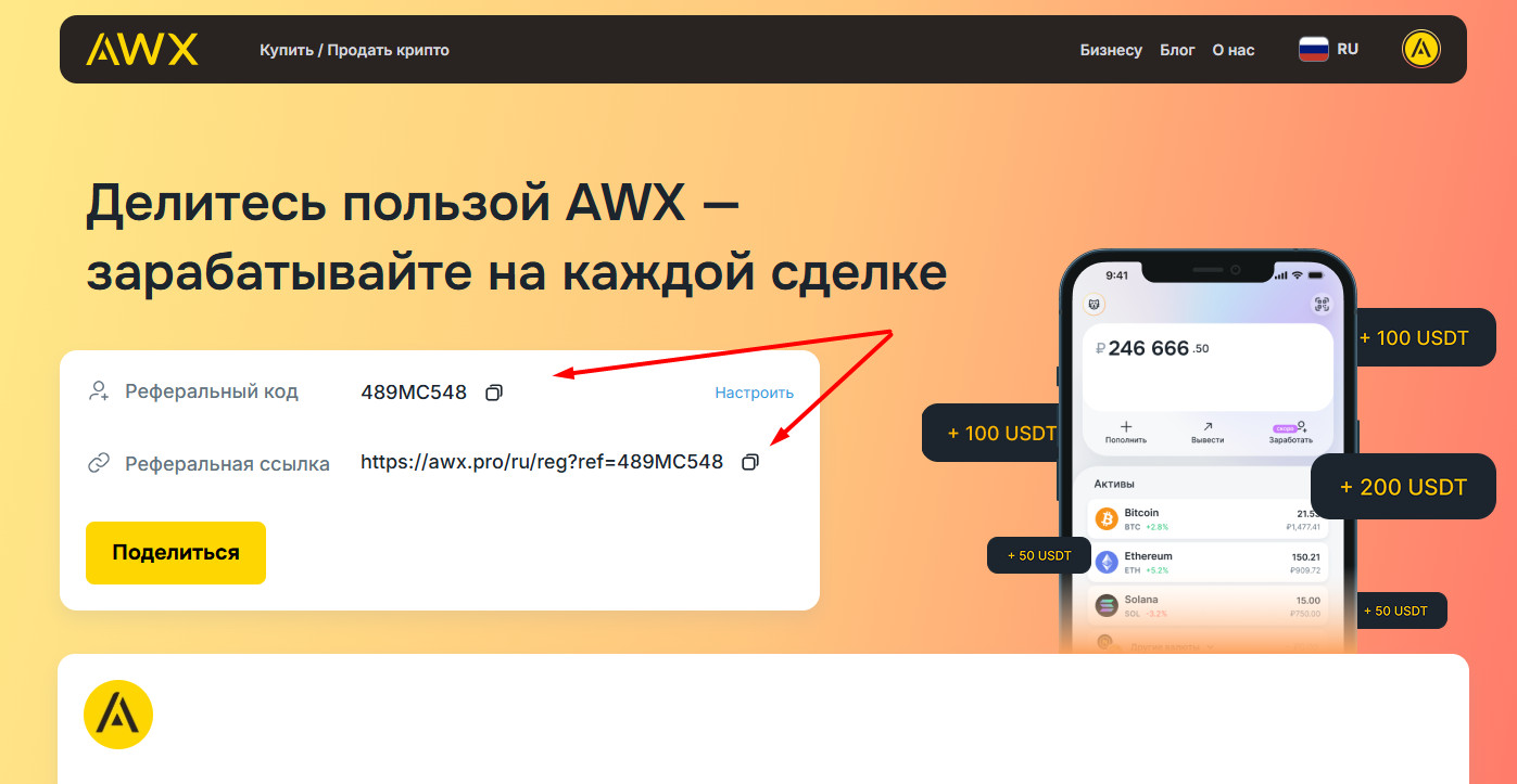 Реферальная программа AWX это простой способ получать пассивный доход от криптовалютных операций ваших друзей. Просто делитесь ссылкой, а мы начисляем проценты.