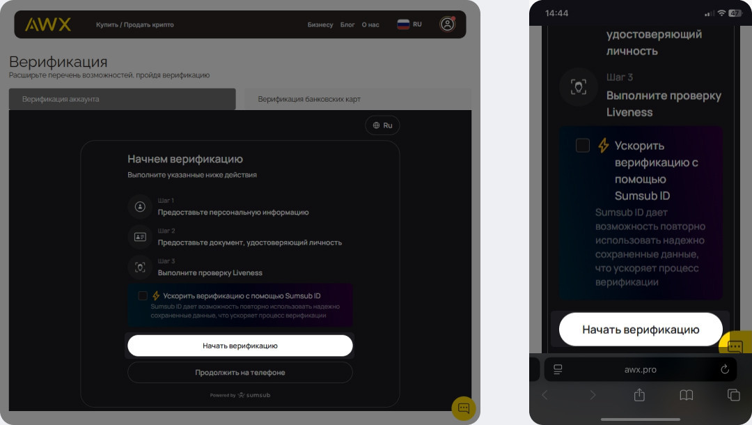 Нажмите кнопку «Начать верификацию» .