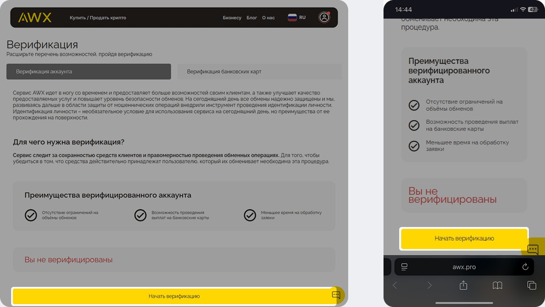 Выберите Верификацию аккаунта, снизу нажмите Начать верификацию