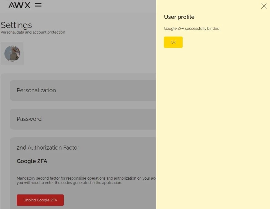 Using the AWX account as an example, let's connect two-factor authentication from Google.