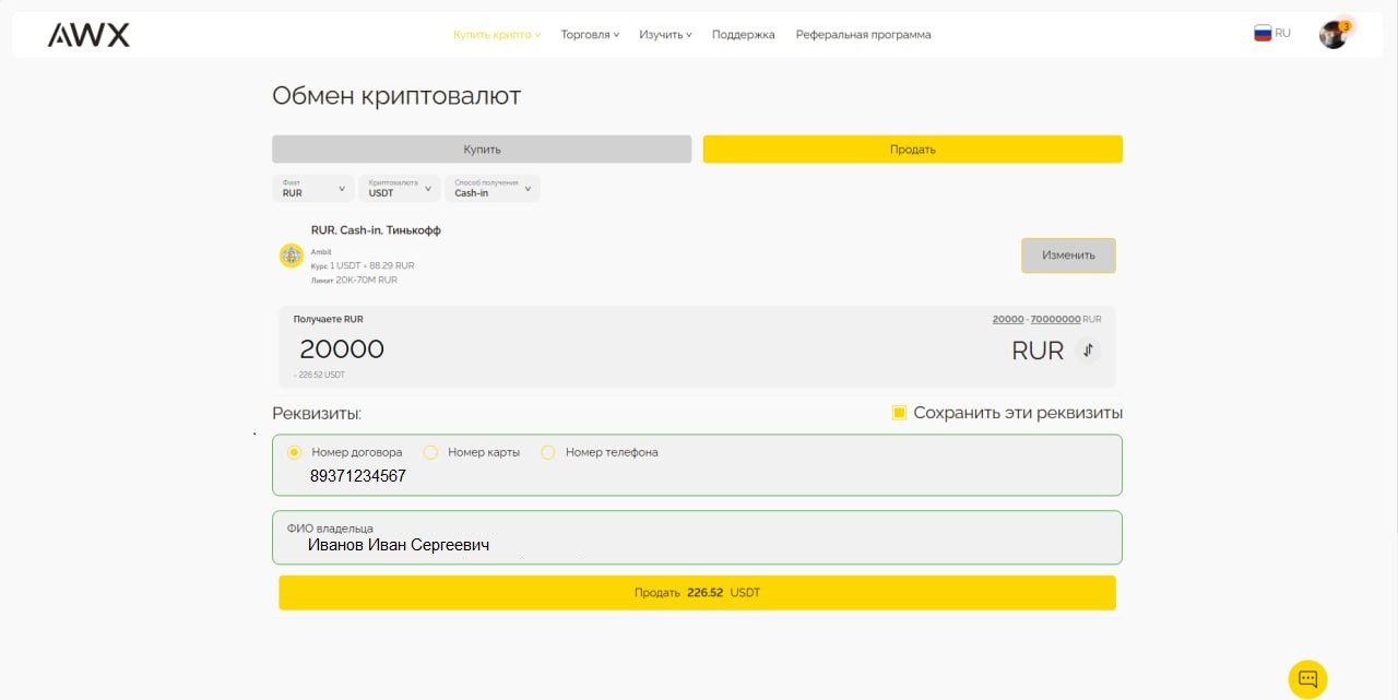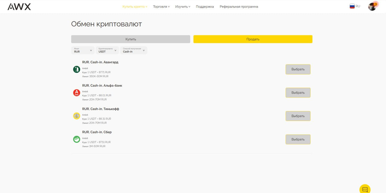 1. To sell virtual assets, you must be registered and verified on the service's website https://awx.pro/en.