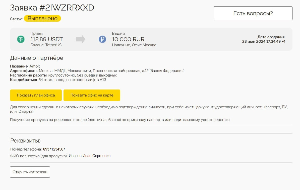 7. Status: Paid. USDT are released from the exco to the buyer.