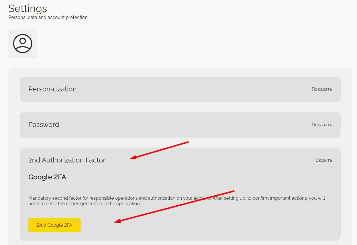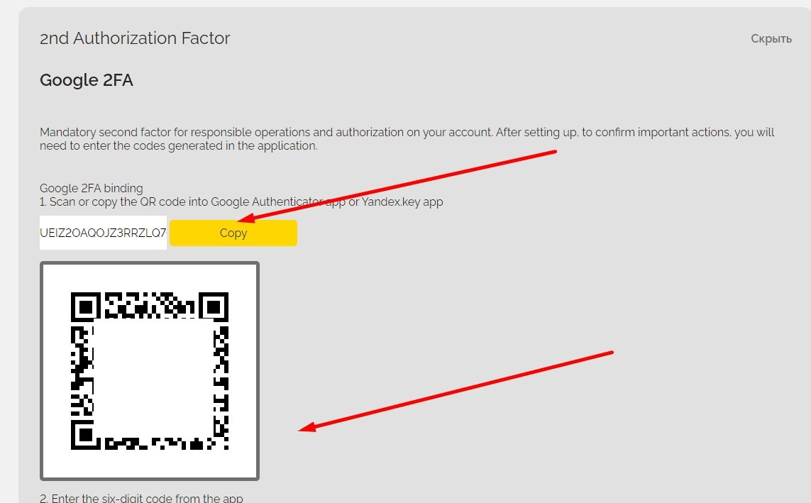 If 2FA is connected, to log into the account, the user must provide a username and password and enter a one-time code from a special code generation application (Google Authenticator).