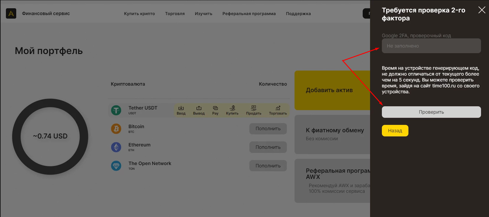3. Next, you need to enter the two-factor authentication code from the app on your smartphone.