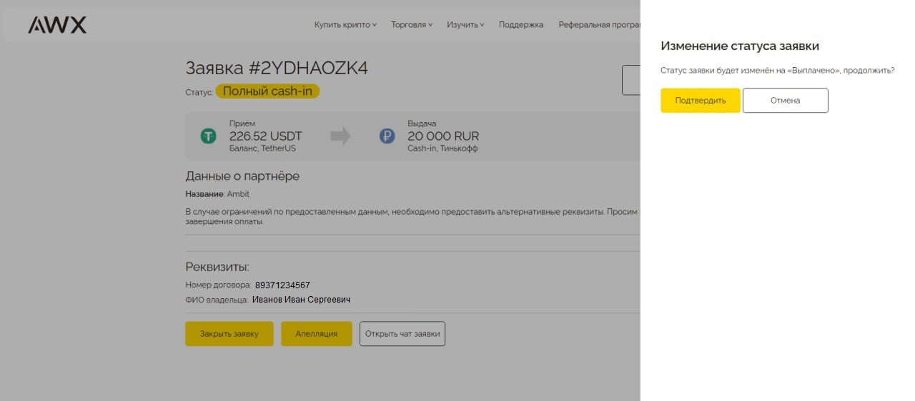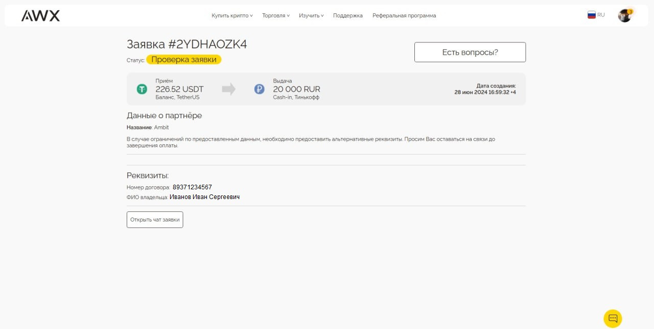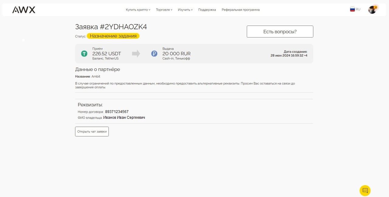 1. To sell virtual assets, you must be registered and verified on the service's website https://awx.pro/en.