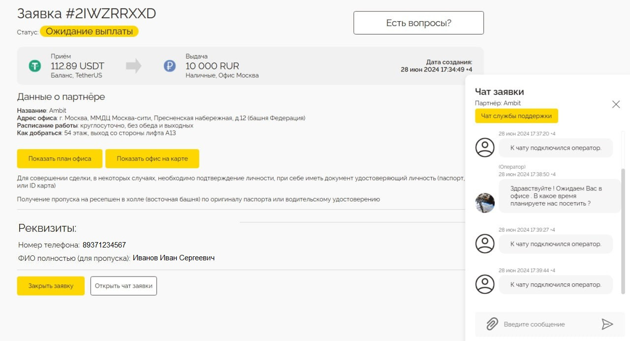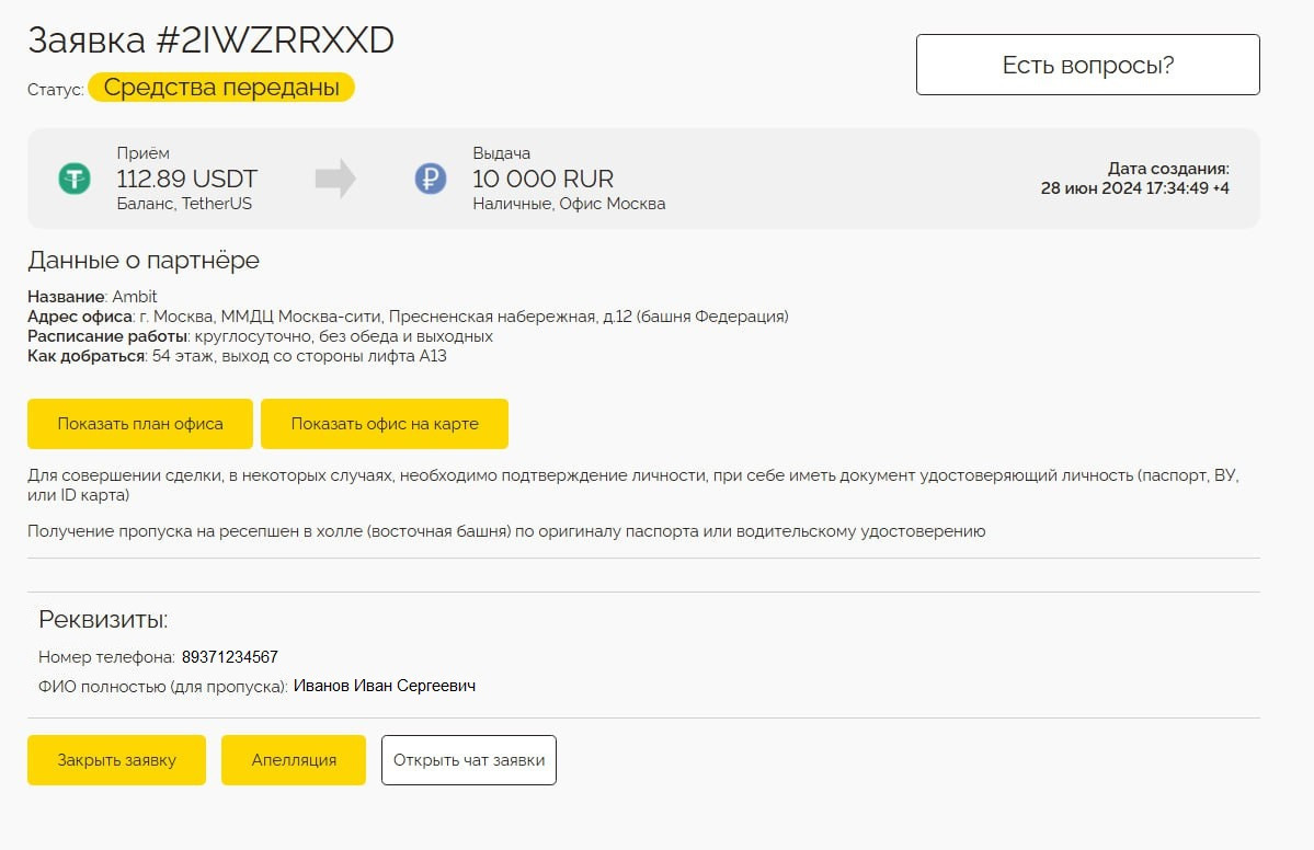 6. Funds have been transferred. You need to press the "Close request" button to finalize the transaction